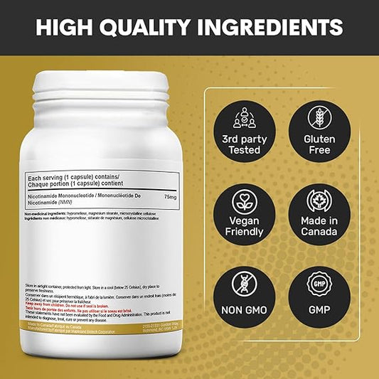 NAD+ Booster Supplement for Cellular Energy Metabolism, Repair, Immunity and Healthy Aging , Nicotinamide Mononucleotide Capsules Pack of 60